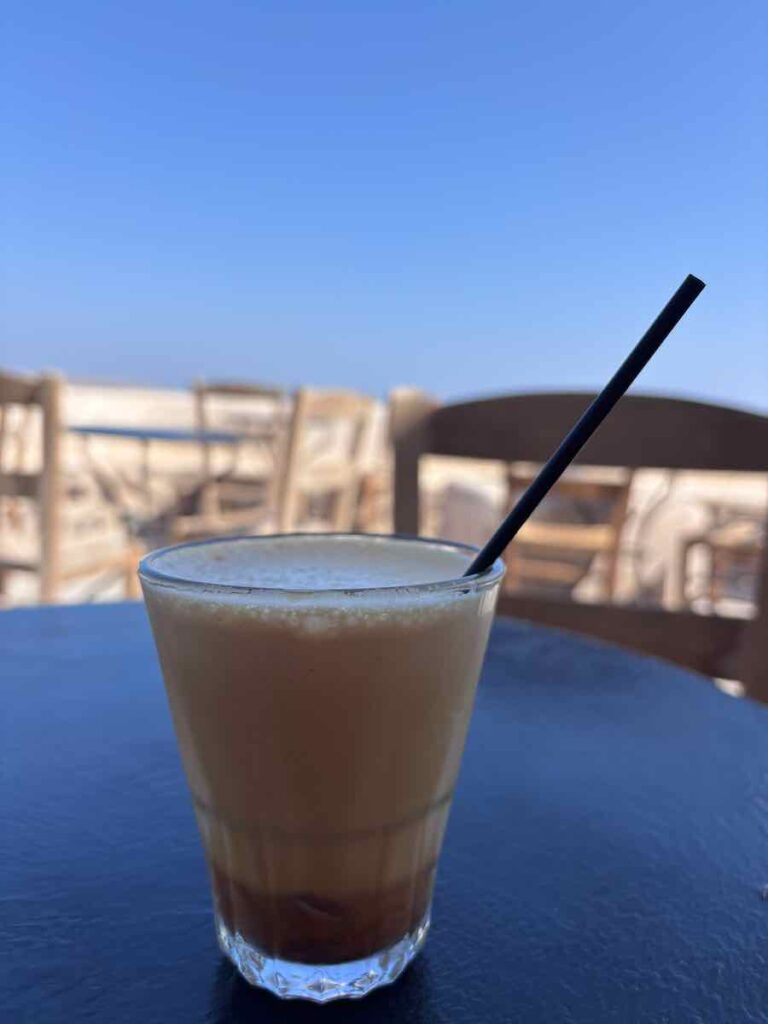 Ein weiteres Highlight am Vormittag: ein kurzer Abstecher zur Patisserie Phyllon, wo es hervorragenden Cappuccino Freddo gibt. Diese eisgekühlte Kaffeespezialität ist auf Santorin ein Muss – nicht nur für Kaffeeliebhaber. Auf dem Rückweg reservierte ich gleich noch einen Platz für das Abendessen in der KooKoo Bar, um den Tag später gemütlich ausklingen zu lassen.