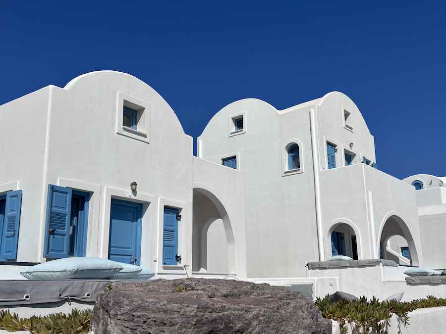 Das Zimmer musste bis 11 Uhr geräumt sein, aber wir durften den Poolbereich noch länger nutzen. Eine Wohltat, wenn man bedenkt, dass draußen in den Gassen von Oia bereits wieder die Touristengruppen durchgeschleust wurden. Besonders im Gedächtnis blieb uns der Kaffeebetreiberin von gegenüber, die mit lauten Ausrufen wie „We’re not animals!“ ihren Unmut über den Massenandrang Luft machte. Ein skurriles Schauspiel – und gleichzeitig ein guter Hinweis darauf, wie gespalten die Atmosphäre in Oia sein kann: zwischen himmlischer Ruhe in kleinen Oasen und dem unaufhaltsamen Gedränge auf den Hauptstraßen.